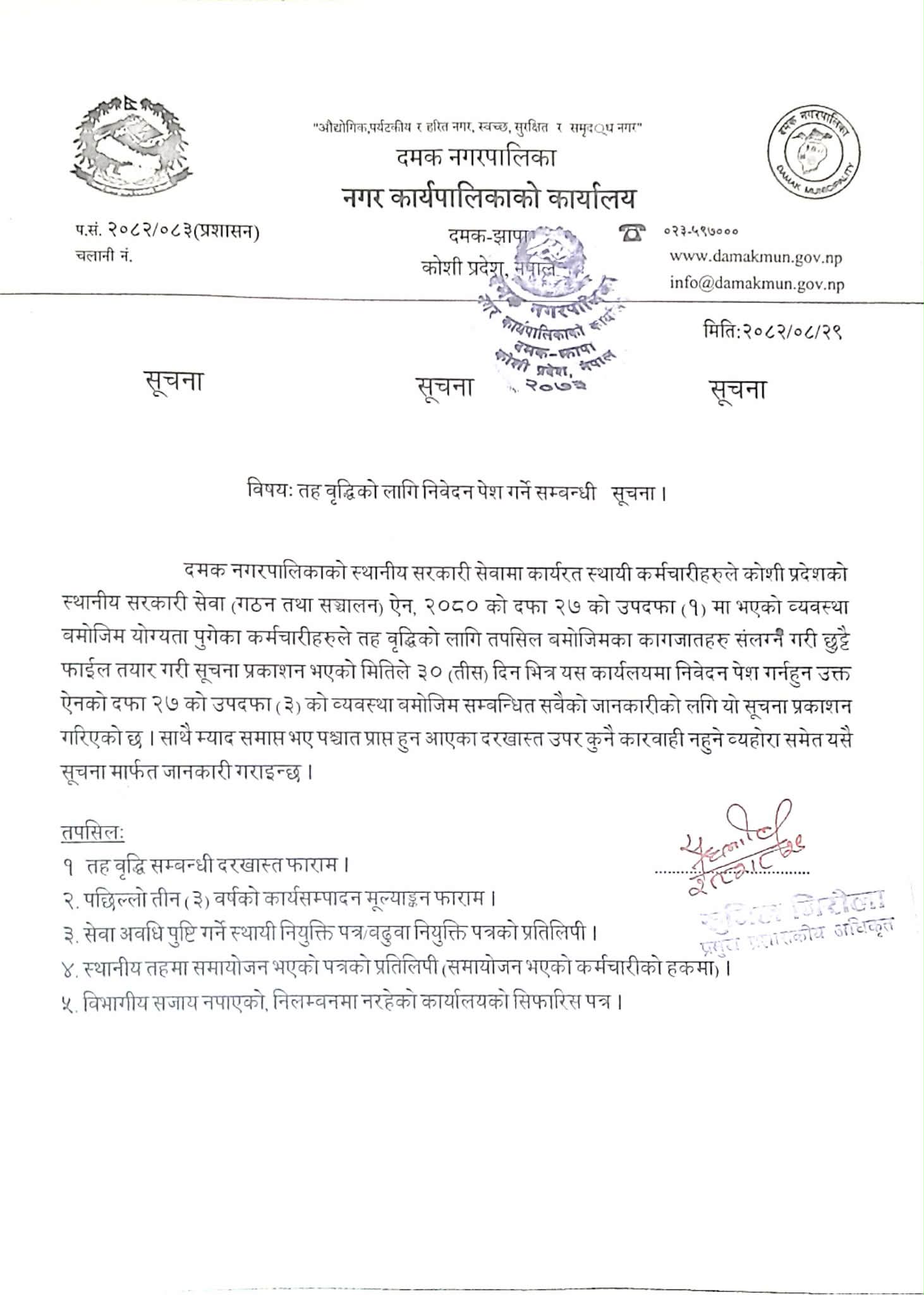 तह वृद्धिको लागि निवेदन पेश गर्ने सम्बन्धमा।