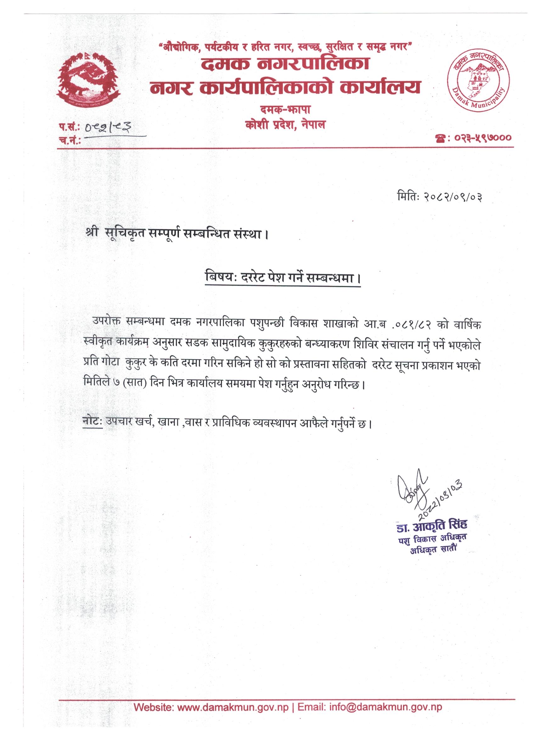 » कुकुर बन्ध्याकरणको दररेट पेश गर्ने सम्बन्धमा ।