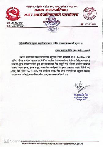 दमक नगरपालिका, नगर कार्यपालिकाको कार्यालय परिसर भित्र नगर प्रहरी कन्ट्रोल रुम (Control Room) निर्माण लागि दरभाउपत्र पेश गर्ने सम्बन्धी सूचना