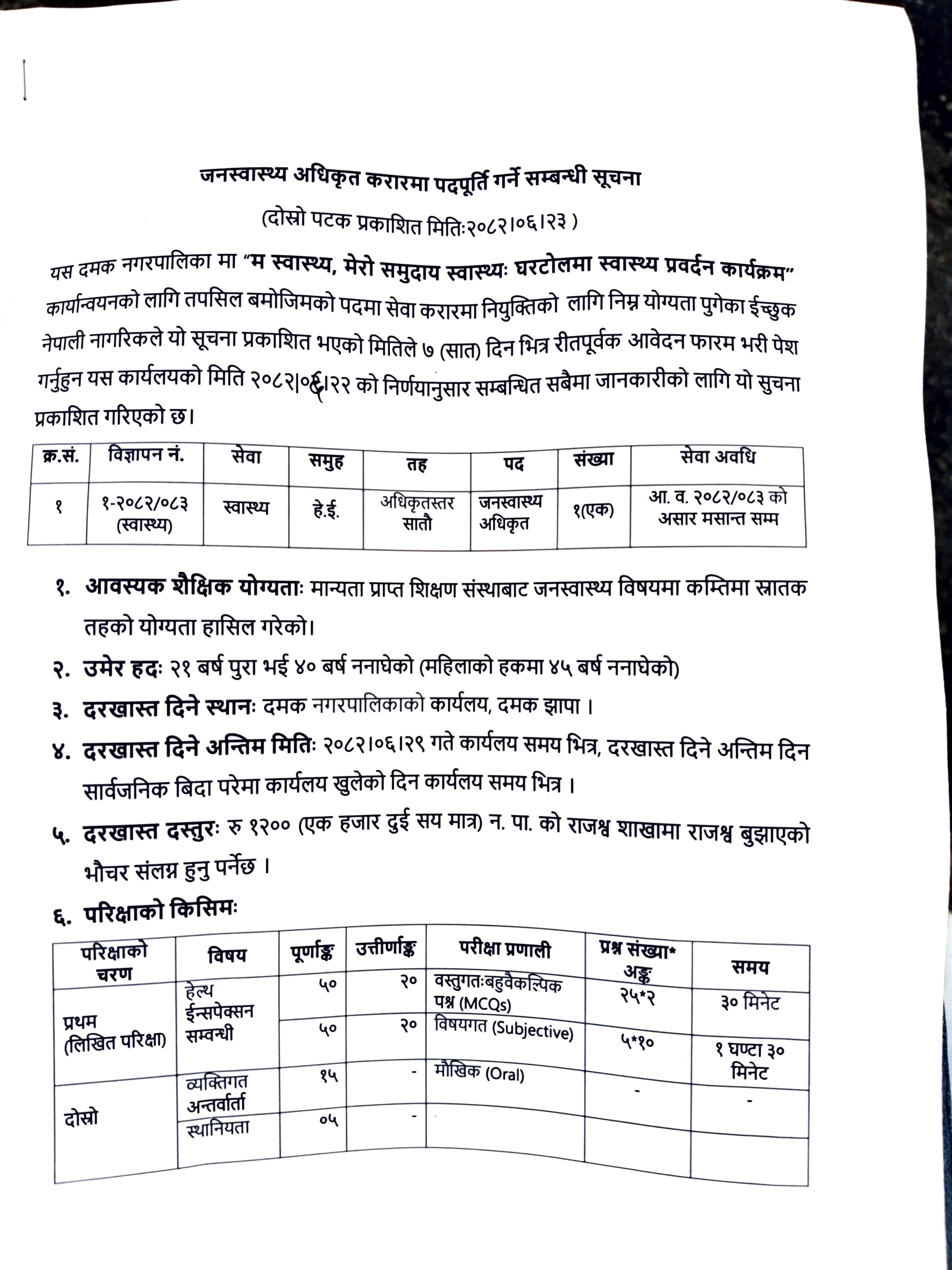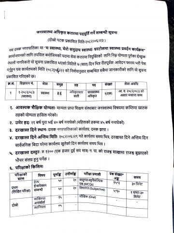 जनस्वास्थ्य अधिकृत करारमा नियुक्ति सम्बन्धी सूचना