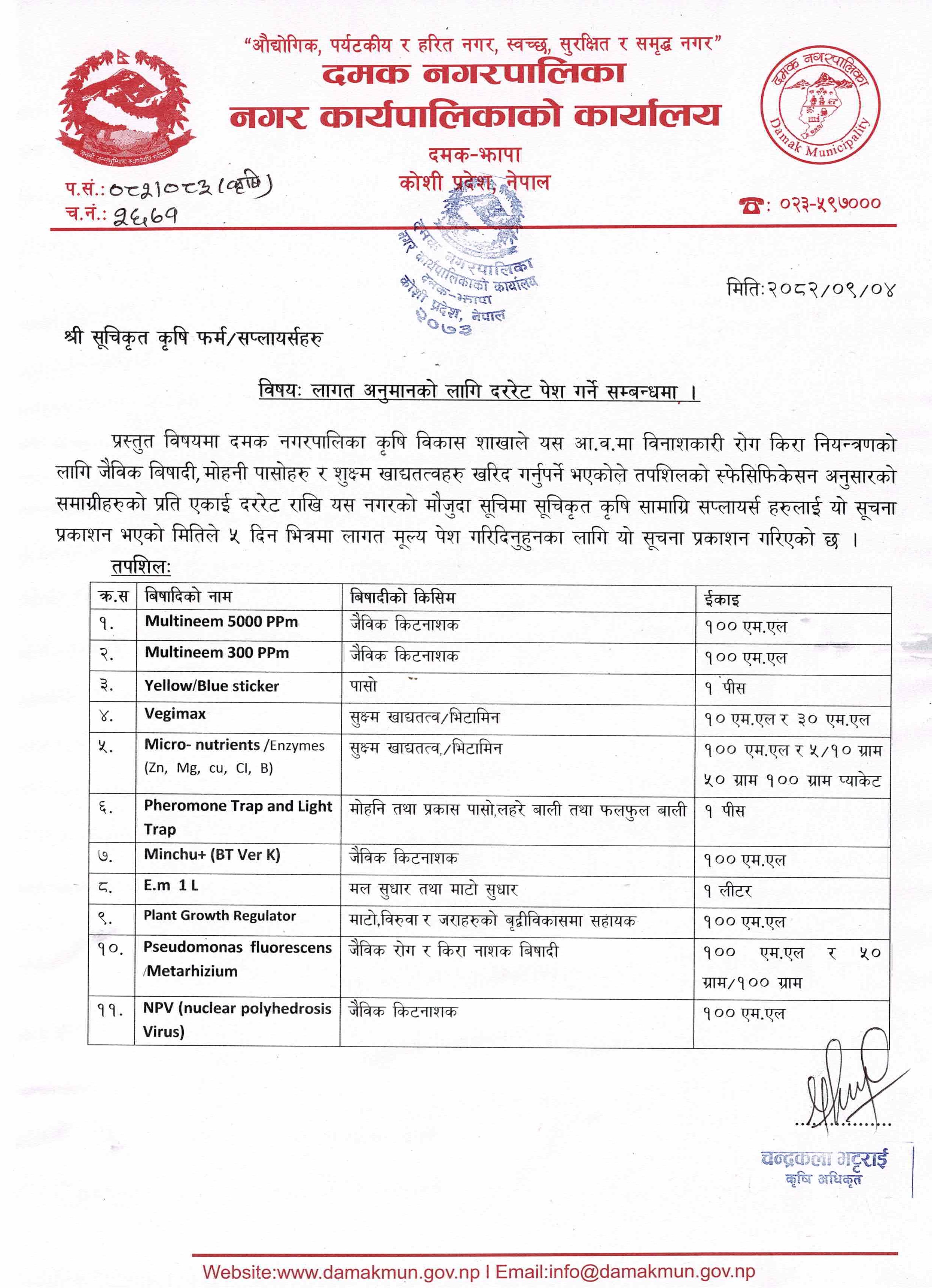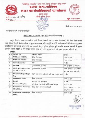 लागत अनुमानको लागी दररेट पेश गर्ने सम्बन्धमा ।(कृषि विकास शाखा)