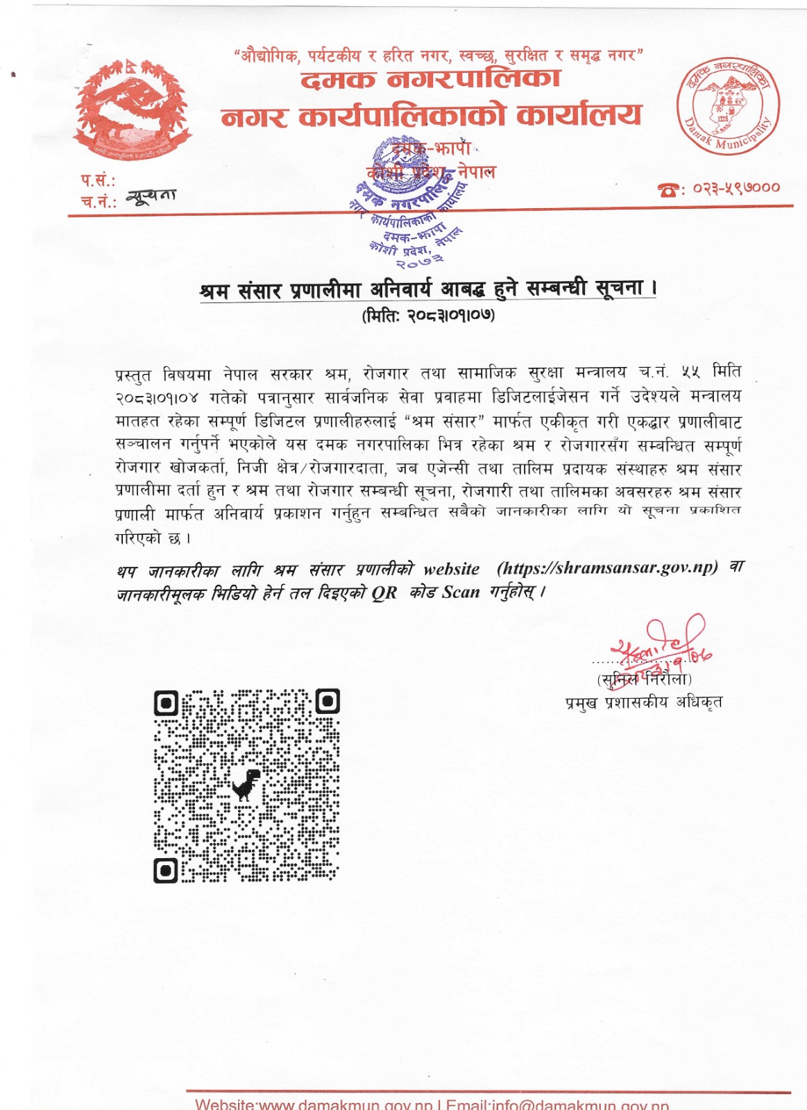 श्रम संसार प्रणालीमा अनिवार्य आवद्ध हुने सम्बन्धी सूचना ।