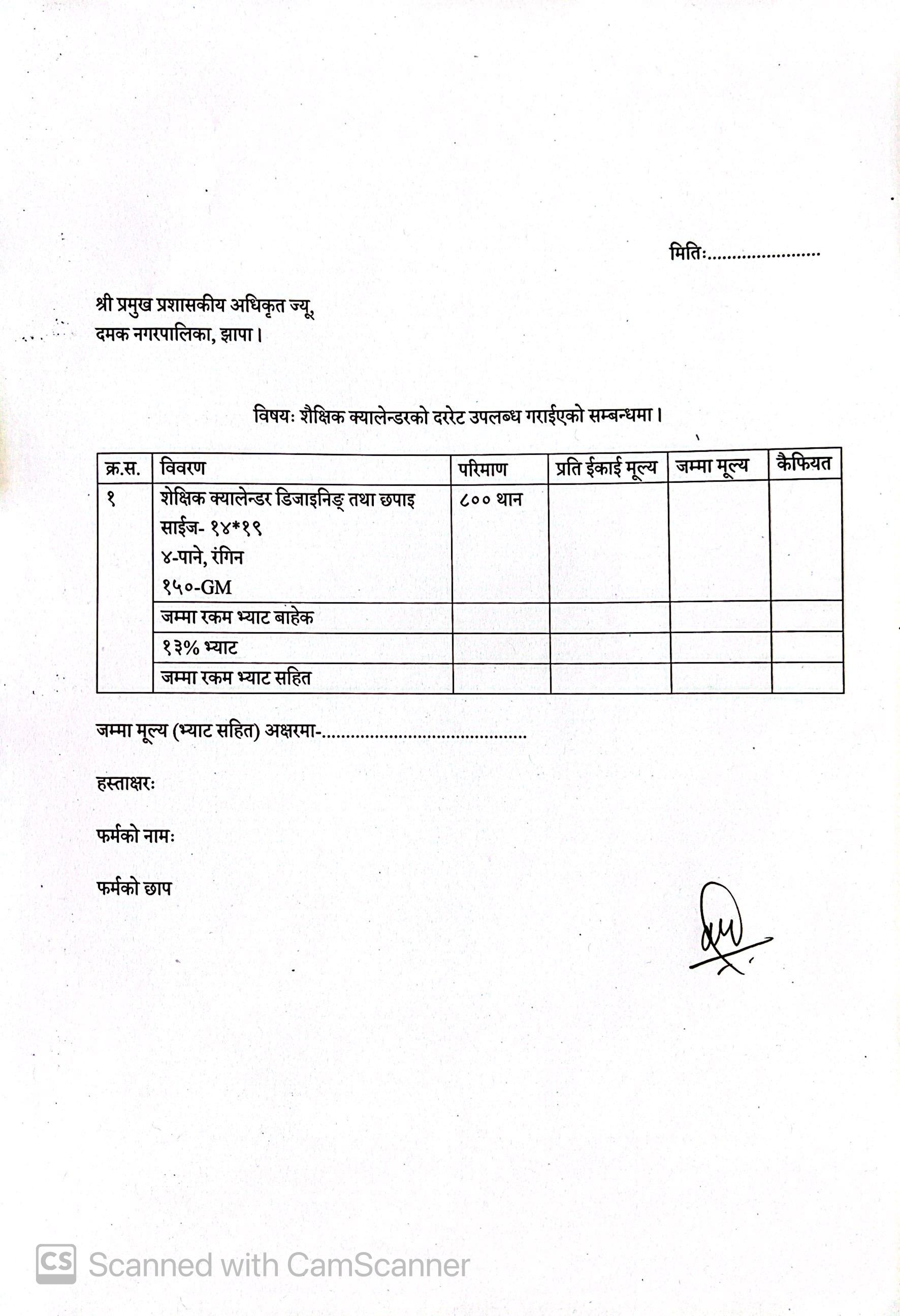 श्री सूचीकृत फर्महरु (सबै) दररेट पेश गर्नुहुन । (क्यालेन्डर