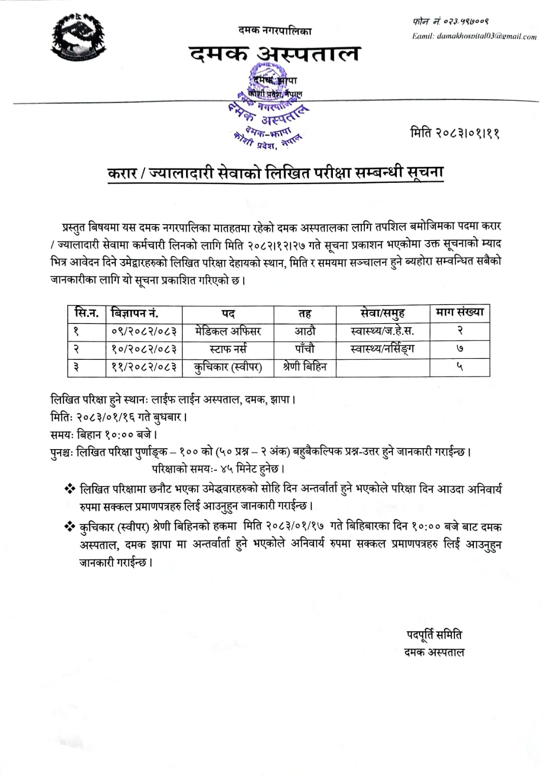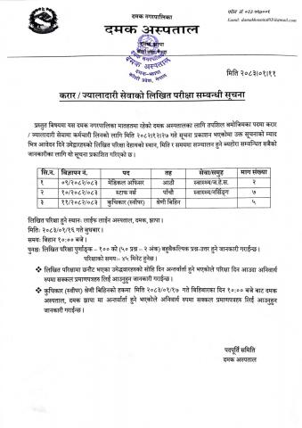 » करार /ज्यालादारी सेवाको लिखित परीक्षा सम्बन्धी सूचना।