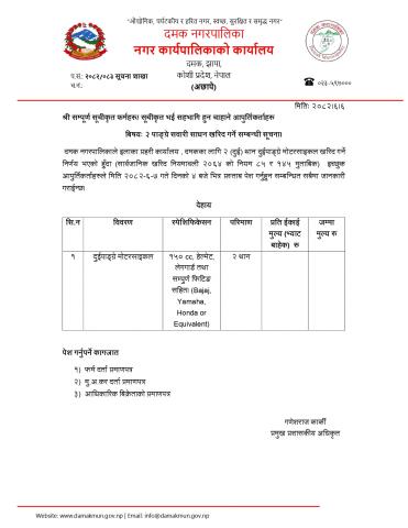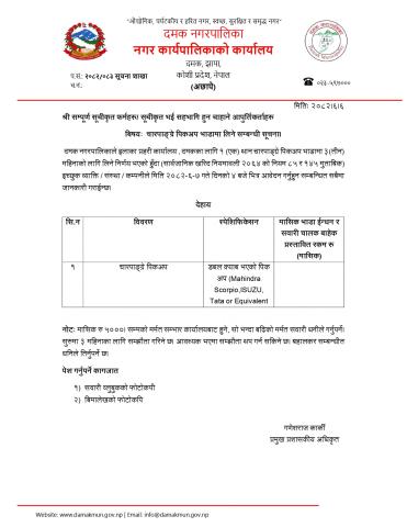 पिकअप भाडामा तथा मोटरसाईकल खरिद सम्बन्धी सूचना