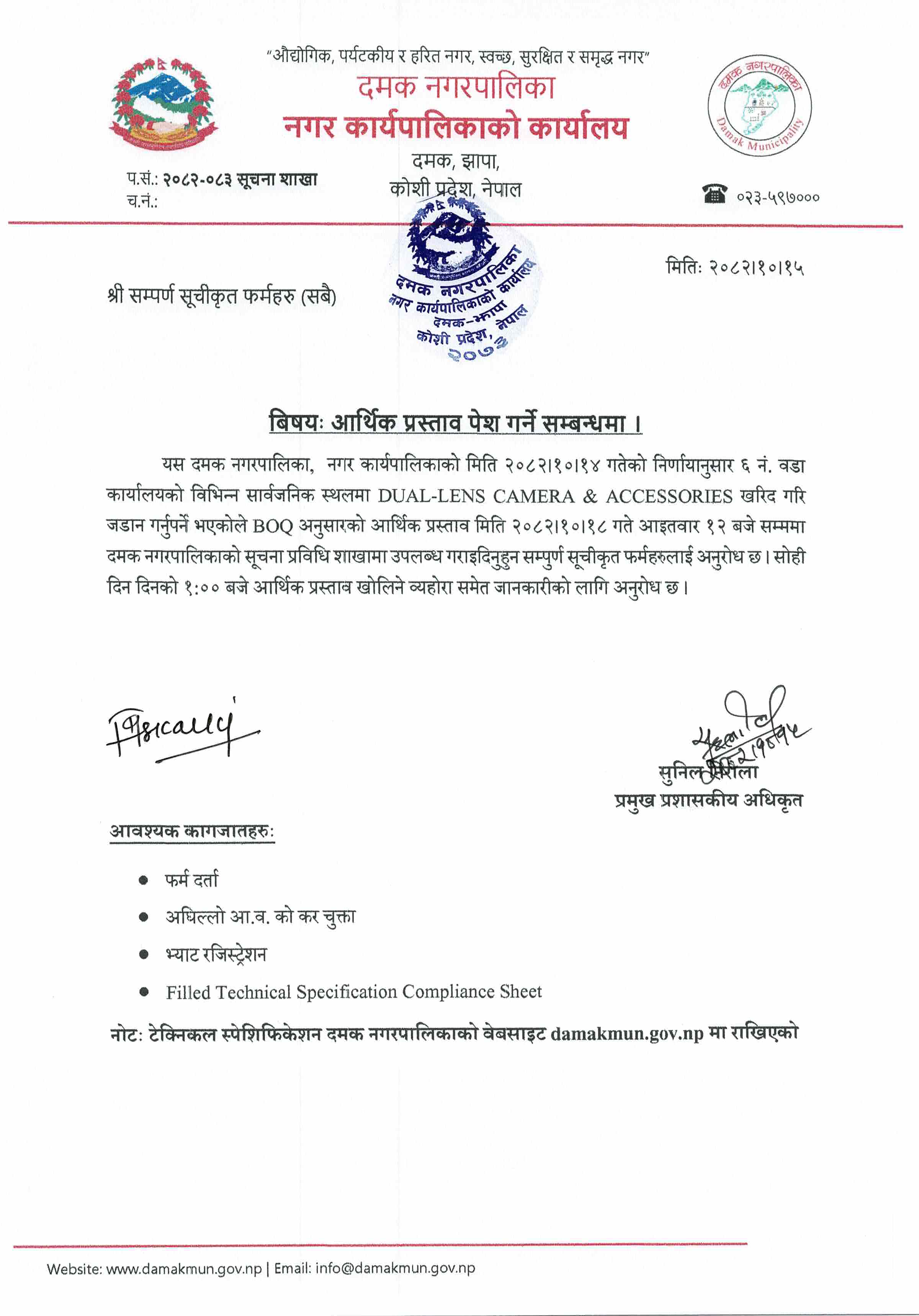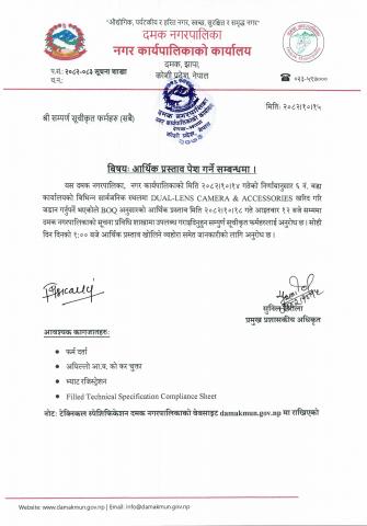 दमक १० को पूर्वाधार निर्माण सम्बन्धी आर्थिक प्रस्ताव पेश गर्ने सार्वजनिक सूचना