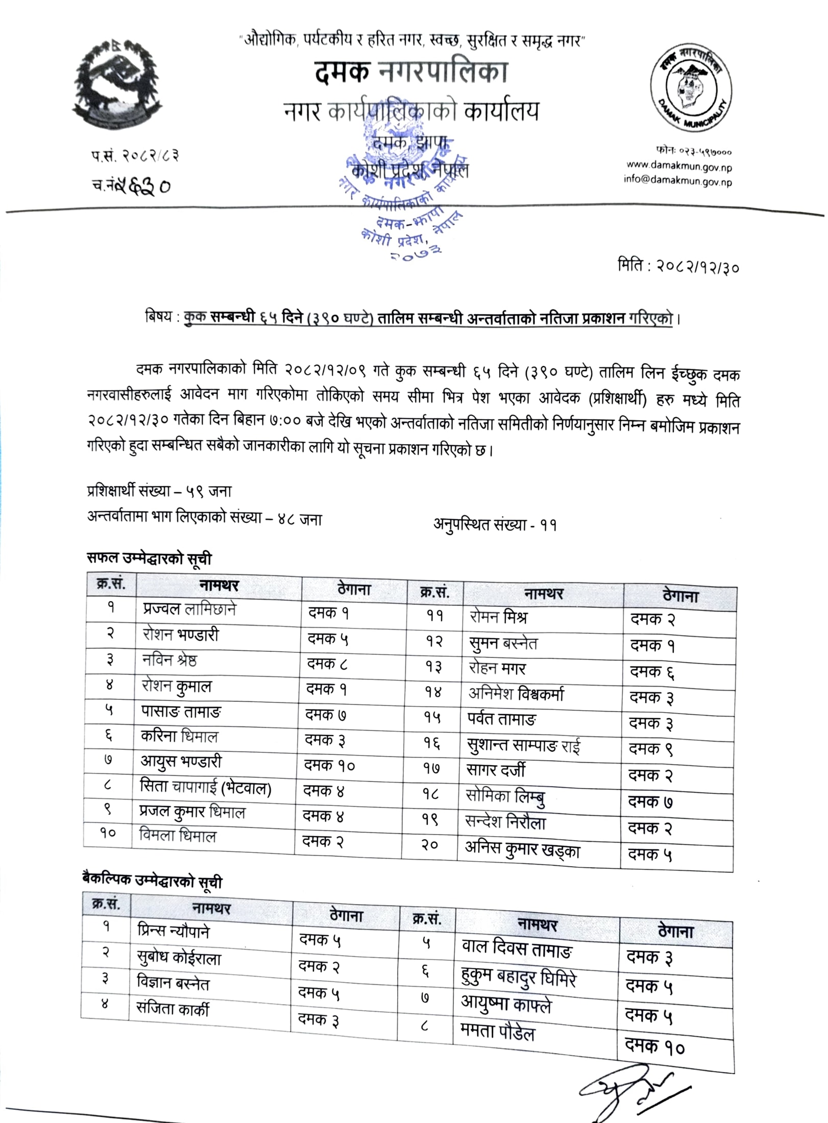 » कुक तालिमको अन्तर्वार्ताको नतिजा प्रकाशन सम्बन्धी सूचना