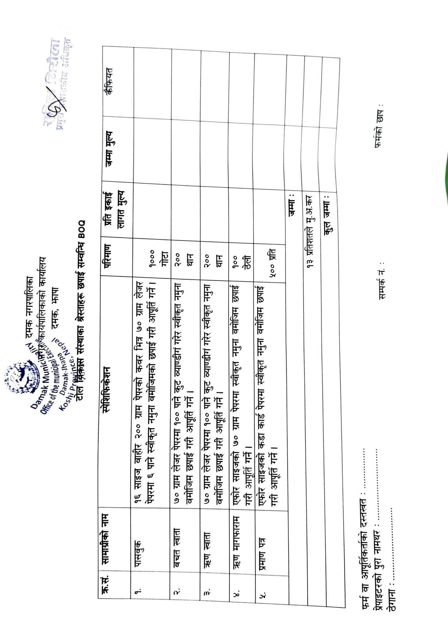 छपाई सम्बन्धी दर रेट पेश गर्ने बारेको सूचना। (खरिद तथा जिन्सी शाखा)