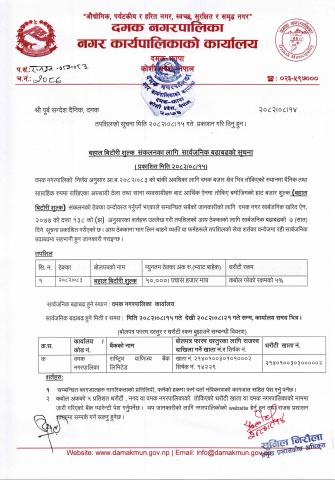 बहाल बिटौरी शुल्क संकलनका लागी सार्वजनिक बढाबढको सूचना ।