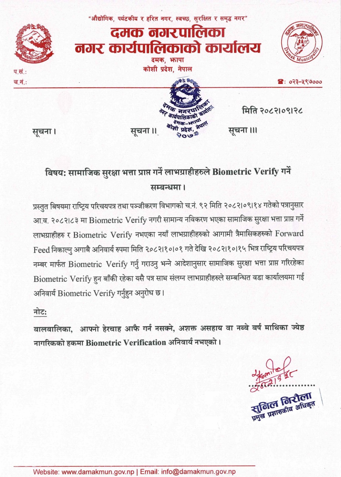 » सामाजिक सुरक्षा भत्ता प्राप्त गर्ने लाभग्राहीले Biometric Verify गर्ने सम्बन्धमा ।