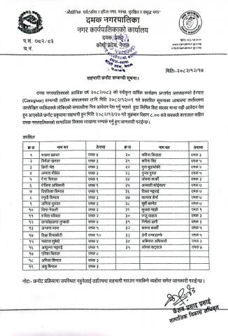 » Caregiver तालिमका लागि सहभागी छनोट सम्बन्धी सूचना।